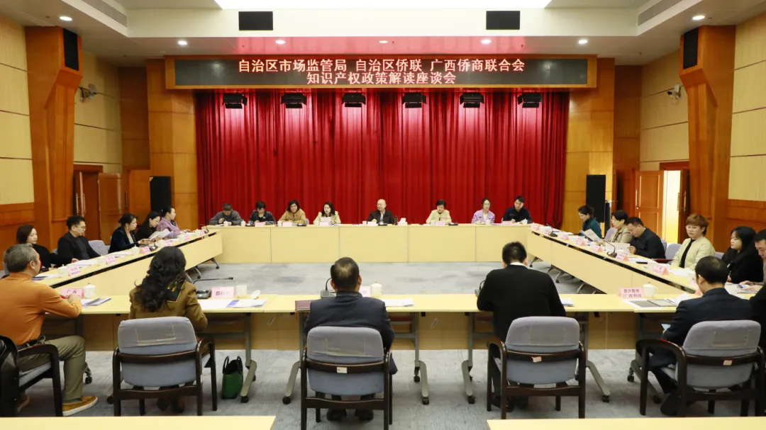11月20日,广西市场监管局联合自治区侨联、广西侨商联合会举办知识产权政策解读座谈会。会议以“精准服务侨资企业,深化知识产权协同”为主题,聚焦侨资企业发展需求,通过政策解读、交流研讨、互动答疑,搭建政企沟通桥梁,深化知识产权协同服务与保护,推动知识产权与侨资经济深度融合。自治区市场监管局党组成员、副局长李暄,自治区侨联党组成员、副主席秦伟鹏出席会议。
